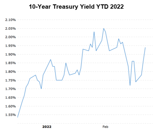 The yield on the 10-year U.S. Treasury has climbed about 50 basis points so far in 2022 and appears poised to break that purely-psychological 2.00% threshold.